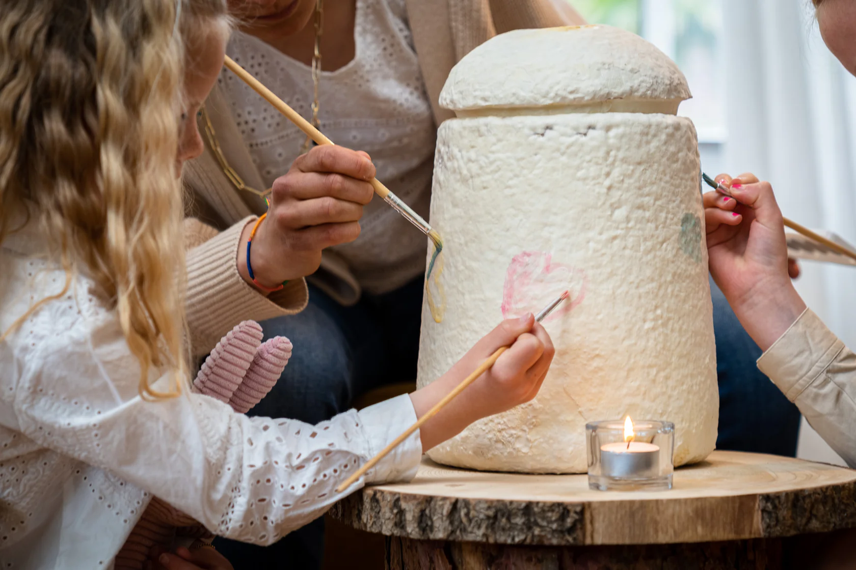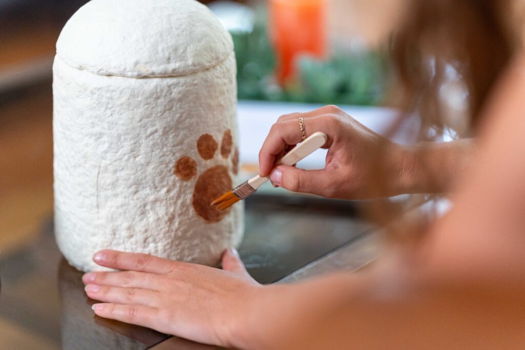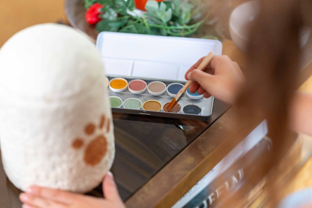 The paint set includes natural, biodegradable colours, including a brush and mixing instructions. Everything you need to decorate our mushroom products with care.
